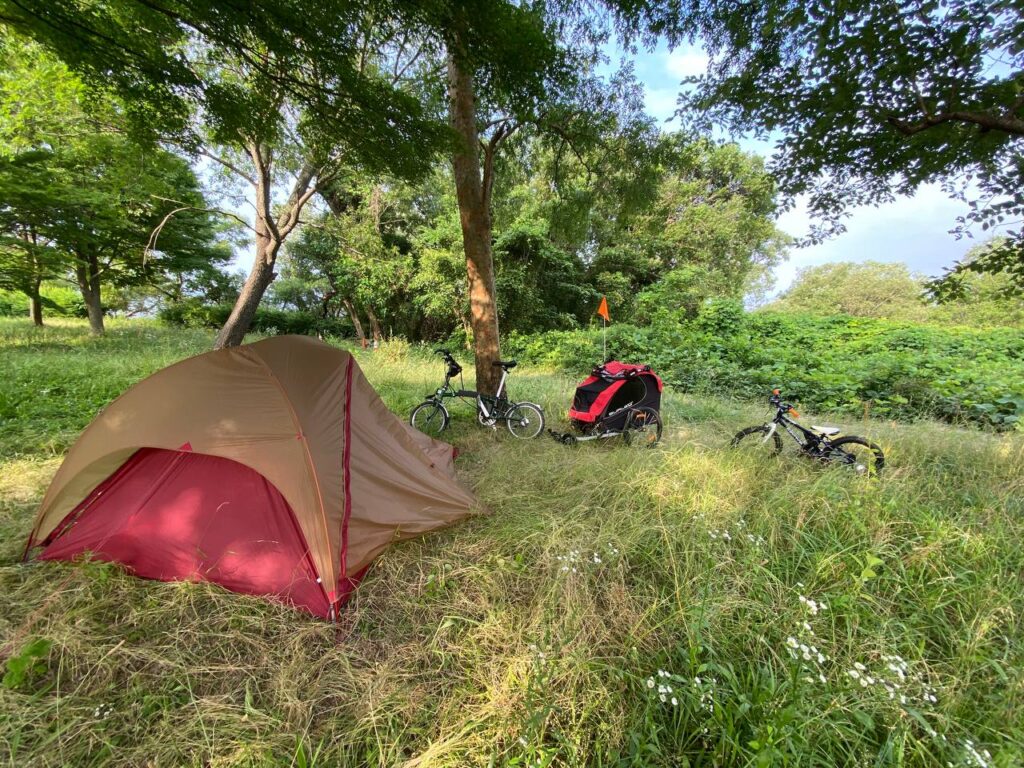 子育てでキャンプは諦めるところでしたが、チャイルドトレーラーとその輪行の仕方を知って、大きく世界が変わりました。