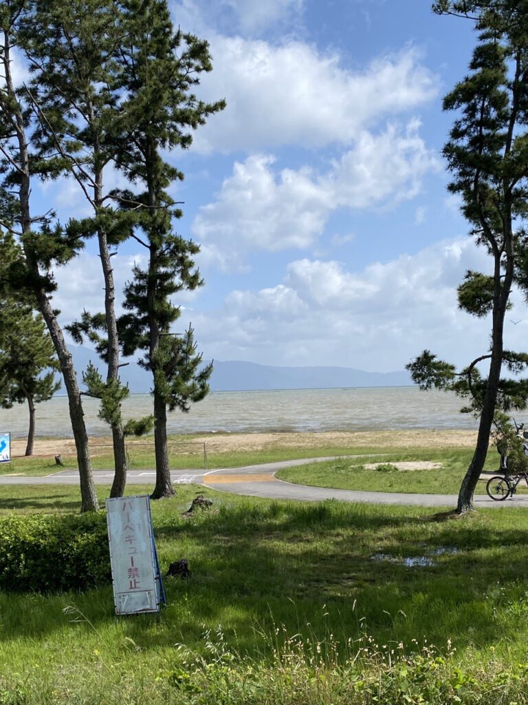 この時点でどうやら先頭に出たらしい。今までに見たことがない濁った琵琶湖を見るライド。ここまでも川は見たことがないくらい増水しており、最初のPCまでは濁流鑑賞ライドであった。