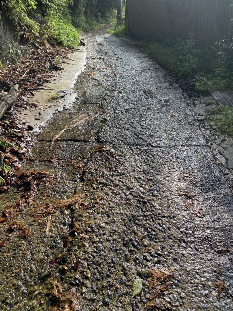 滋賀県大津市に入るとすぐに激坂が現れた。キューシートにもあった通り、段々道に穴が開いてようにガタガタになって来る。昨日の雨で水が流れている。小関越(こぜきごえ)の旧道というらしい。