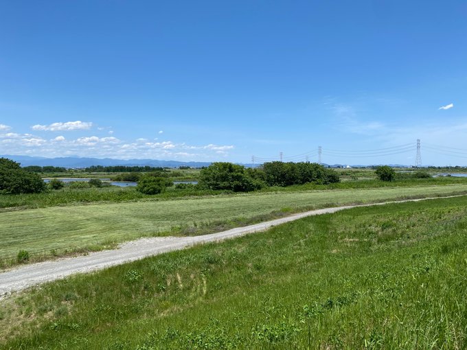 コンビニに好みの飲料がなかったことを除けば、ここまでは順調だったと思う。ここから夕方まで、時々曇りになるが基本的には暑い。予報は28℃だったが、日が出ているときは30℃くらいだったのではないか。残り70kmくらいなのに、田んぼの中の吹きっさらしで煽られてなかなか進まない。ゴールが遠い。残り45kmで自販機休憩。水浴びの水、炭酸飲料、ゼリー飲料を購入するも、残念ながらあまり冷えていなかった。