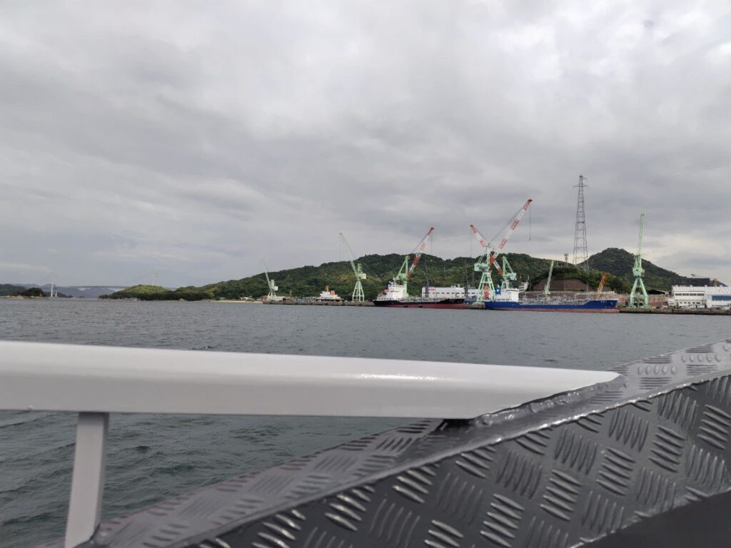 クレーンが見えると広島らしさを感じます。結構揺れるので、スマホを落とすんじゃないかと思って写真はこれだけです。子どもは子どもで、この記事を書いている最中に写真を見て「下がよかった。ぶりちゃん落としそうだったから。」と今になって感想を語ってくれました。