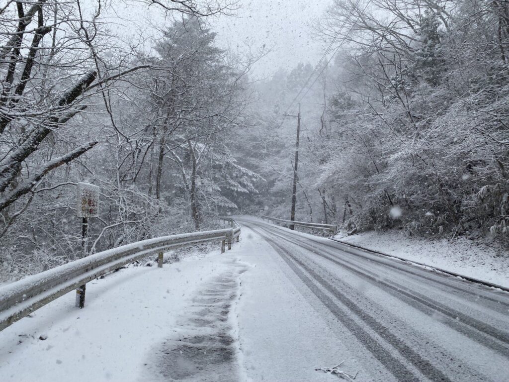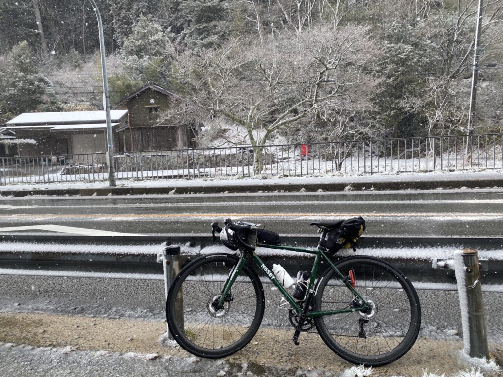 国道173号線に抜ける道では道路に雪が積もっていた。凍ってはいなかったので車のタイヤの跡を通れば普通に走れた。雪道サイクリングの経験が役立ったようだ。ディスクブレーキのおかげもあって、怖がらずに安全に下ることができた。
