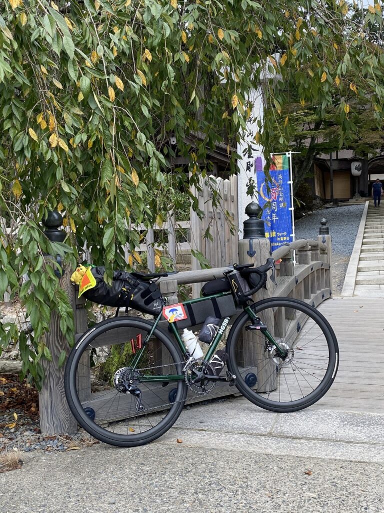 高野山に向かって登って行く。自分に合った自転車は、立ち漕ぎのときにバイクを左右に振るリズムが自然に合うのがよい。