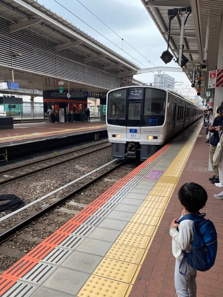 博多に着いたのは12時過ぎ。次の在来線まで1時間見積もっており、新幹線の駅構内で昼食にしました。コンビニで買ってベンチで食べるも構内にはコンビニにすらゴミ箱がなかったり、トレーラーで移動する導線(車椅子と同じ)が分かりにくくてエレベーターのないほうに行きかけたり(ひかり乗り換え口しかエレベーターがない。しかも駅員さんの案内が冷たい。)、イライライが募る駅でした。