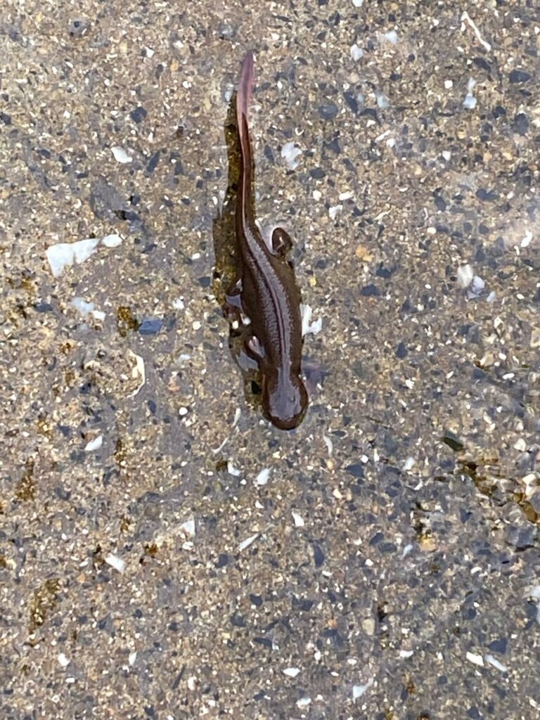 アカハライモリでした~。水辺に棲んでいるのにこんなに泳ぐのが下手だとは。だから毒があるのかな?