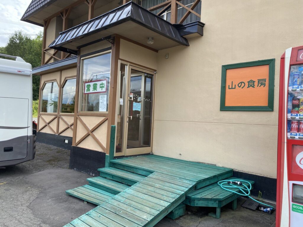 もう5km進んで「山の食房」で昼食。ピッチャーごと冷たいお水をいただけたので助かりました。カレー大盛を頼んで子どもに分けて食べさせようとしましたが、一口で「辛いから食べない」と。子ども用にライス小と小皿を頼み直し、カレー大盛を1人で食べました。結構な量でした。