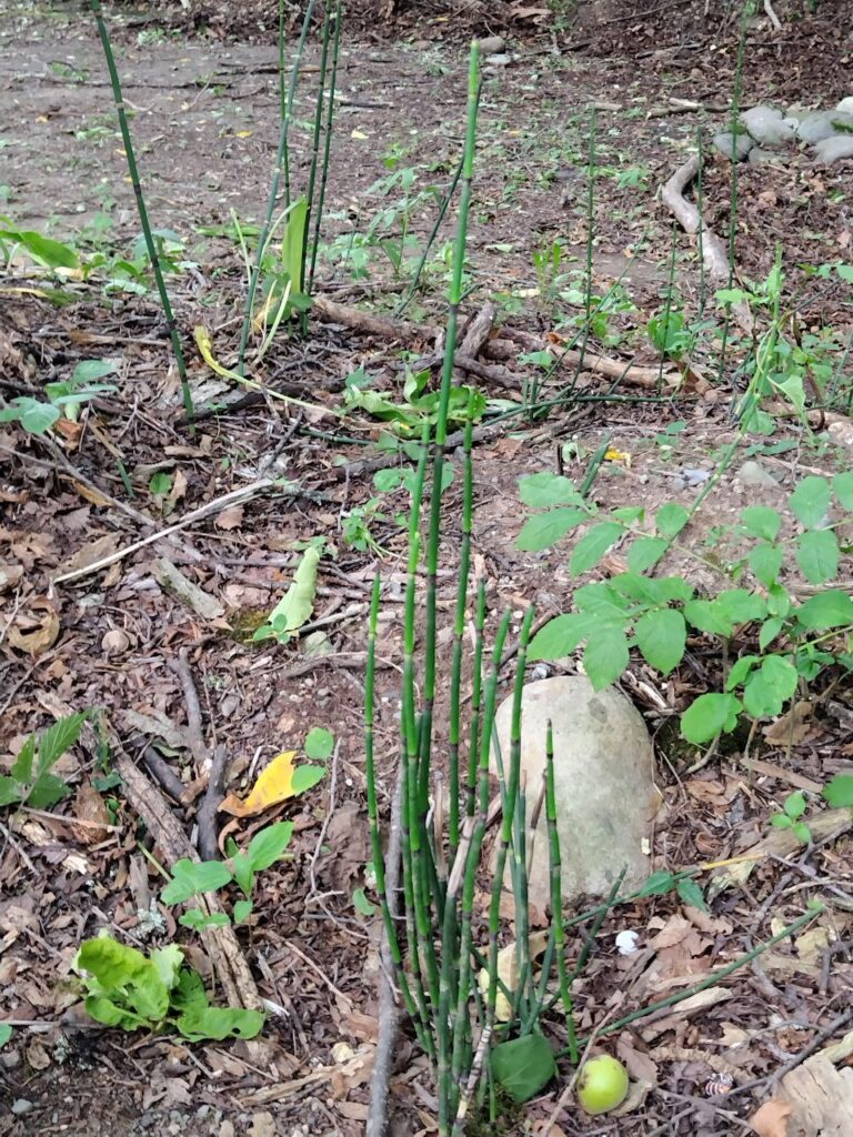 トクサ。根元に落ちている丸い実はくるみでしょうか。