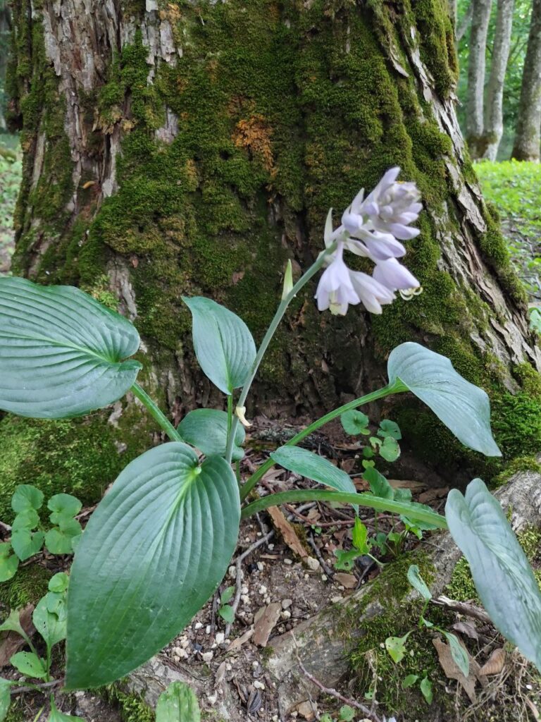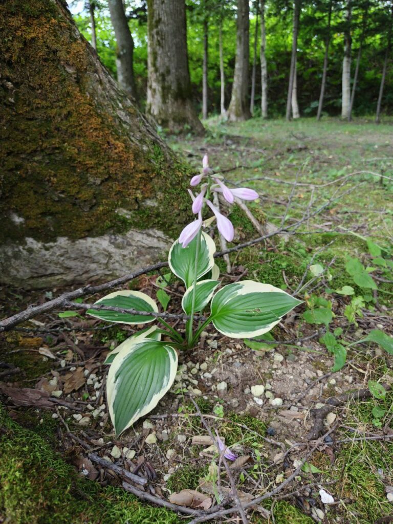 ギボウシ。木陰を好むらしく、木の根元に生えていました。