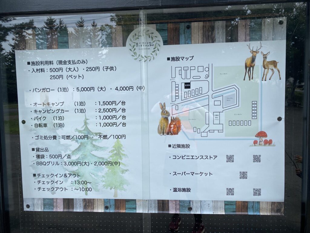 今回利用した上川ファミリーオートキャンプ村について、以下にまとめました。以前と料金体系や利用できる設備が変わっているようですので、ウェブサイトをよく確認してください。