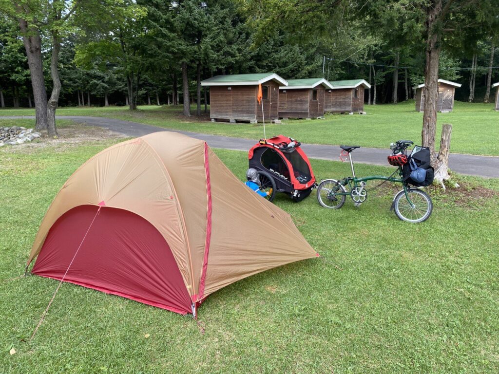 1泊目は旭川の神楽岡公園少年キャンプ村にて。