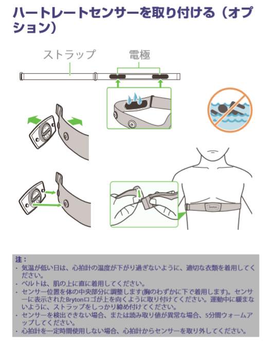 ところで、私が買ったGPSサイコンはBryton Rider530で、スマートハートレートセンサーというみぞおち上にバンドで固定する、いわゆる乳バンド型の心拍計がセットになっていました。