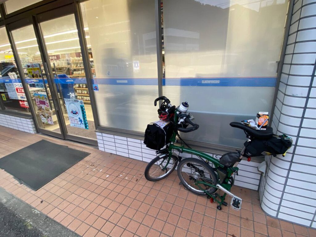 ブロンプトンは下りで遅い。理由はいろいろあるけれど、ロードバイクの空気抵抗の少なさ、ブレーキ性能のよさには敵わず、どんどん差が広がる。178km地点の新宮のコンビニPCで1時間50分程度の貯金があったが、前後とも人を見かけなかった。