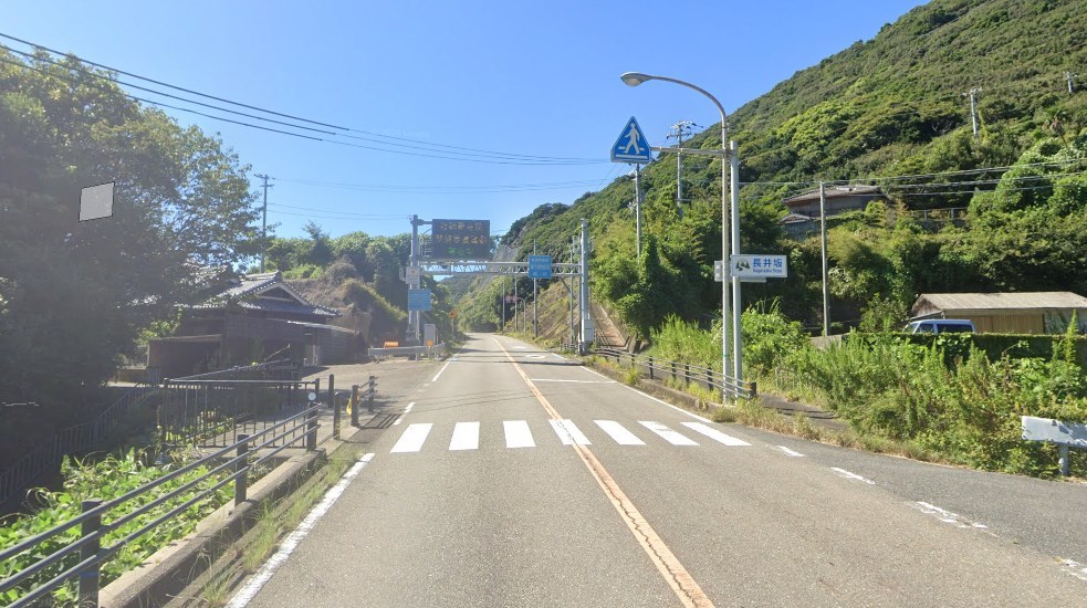 すさみの中心部に向かっている途中に長井坂(ながいざか)という看板が見える(Googleマップ)。