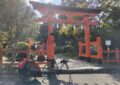 意外にもあっさり高野山に着いてしまいました。高野山は紅葉シーズンに入ったところで、大門付近では係員が車を空いている駐車場に誘導していました。大門の道路を挟んで反対側に自転車向けモバイルスタンプラリー WAKAYAMA800(ウェブサイト)の期間限定スポットがあり、自転車とトレーラーをゼブラゾーンに停めさせてもらってスタンプをゲットしました。もう1ヶ所、高野山観光情報センターに寄ってスタンプを取り、これで10スタンプ賞という景品に応募できることになりました。期間限定スタンプのおかげです(^人^)