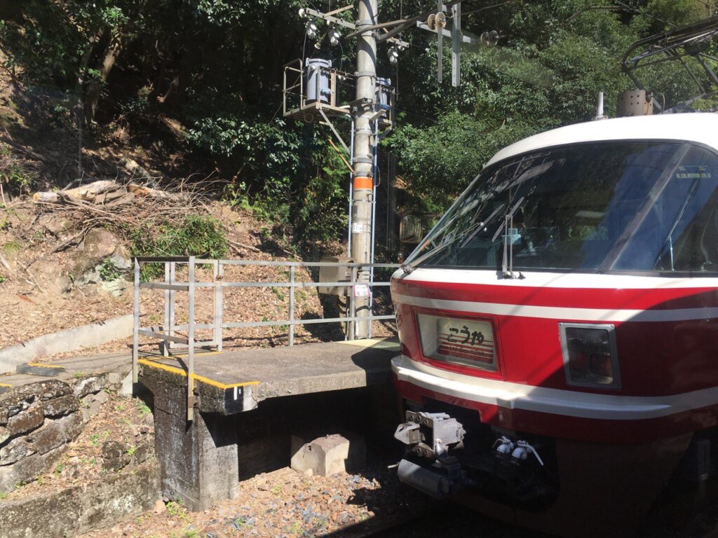 極楽橋駅での待ち時間に、車内にトレーラーを置いたまま昼食を摂ったり写真を撮ったりしました。