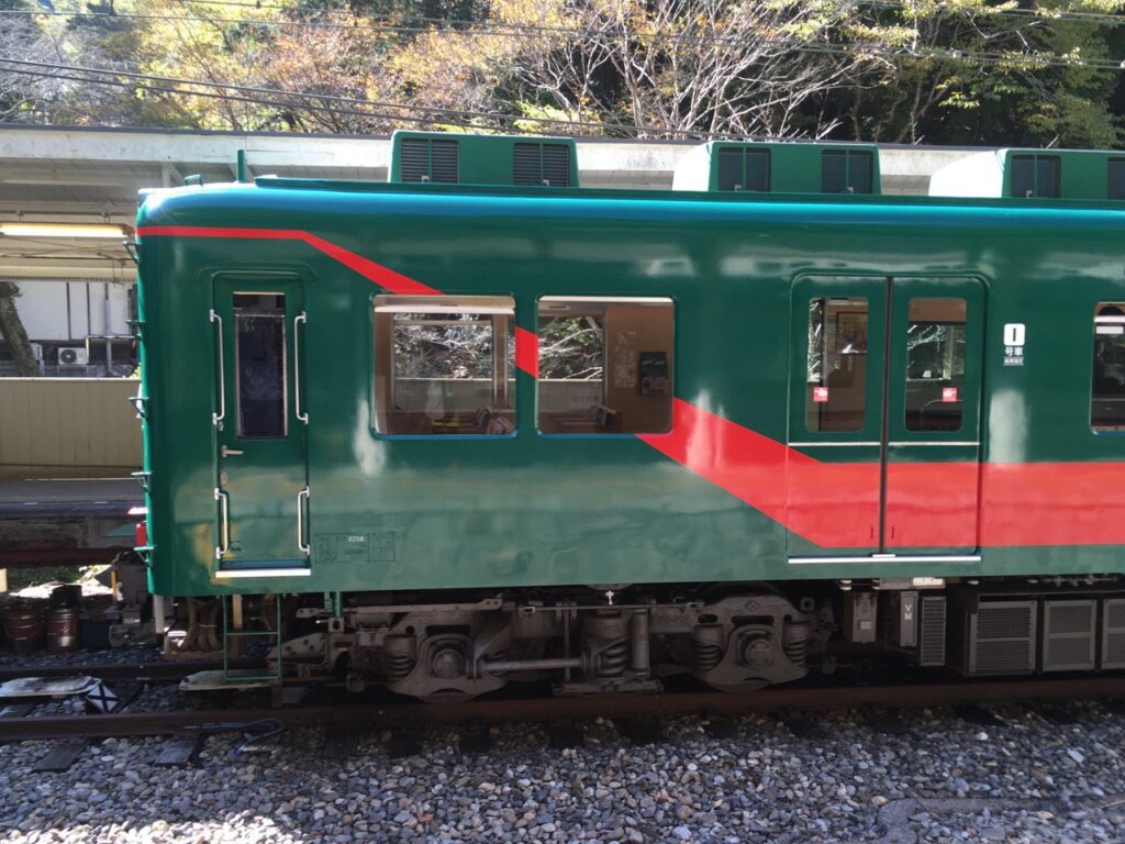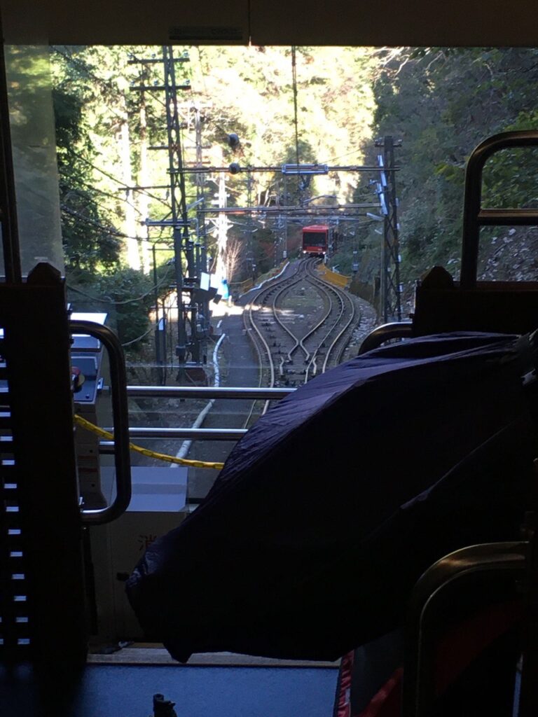 途中で一部複線になって、高野山行きのケーブルカーとすれ違いますよ。