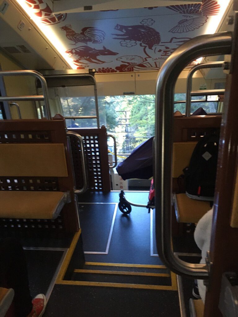 定刻に出発。ガタゴト音が結構響きます。子どもは揺れがちょうど眠気を誘ったのか、座席ですぐ寝ました。