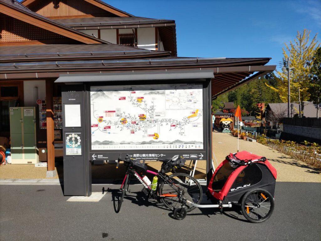 Part 1と2は1回目の2泊3日の和歌山自転車親子キャンプツーリング、Part3以降は2回目の2泊3日のツーリングです。最終日はかつらぎ町から輪行で帰るだけなのですが、チャイルドトレーラーを乗せられるバリアフリー対応の最寄り駅は、南海電鉄 高野山駅なのです。高野山駅から乗るのは高野山ケーブルカー。電車好きの子どもに楽しんでもらおうと思い、がんばって駅まで登ることにしました。
