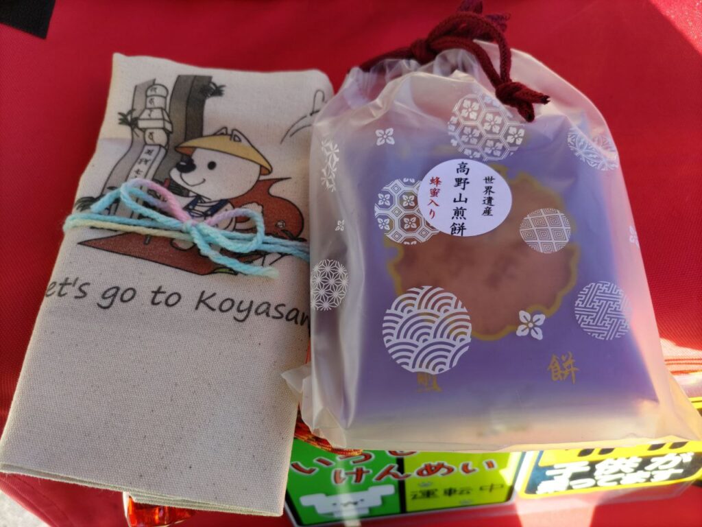 観光情報センターで、和歌山県PRキャラクター きいちゃんのトートバッグに一目惚れ。煎餅と一緒に買いました。こちら両方とも近くの就労支援施設での作業を経た製品のようです。2020年9月にオープンしたばかりのようですが、高野山って何でも揃っているのだなぁと感心しました。
