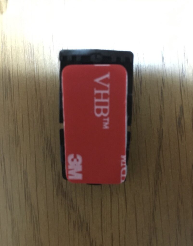 粘着テープは3Mで固定はバッチリ。前照灯をヘルメット用マウントで取り付けるより軽量なのと、ヘッドライトは角度が変更できるのでヘルメットを被ったままでの作業がしやすくなので、最近この方法に変えました。