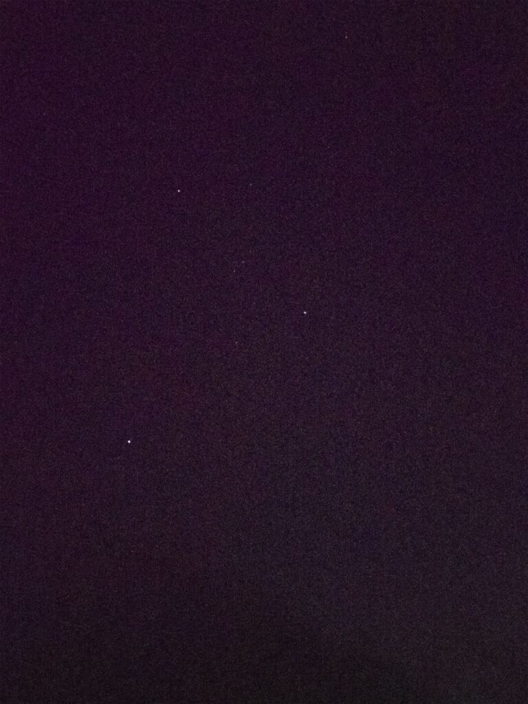 南の空にオリオン座。星もよく見える。