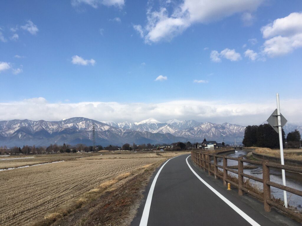 この先、あづみ野やまびこ自転車道を走り、