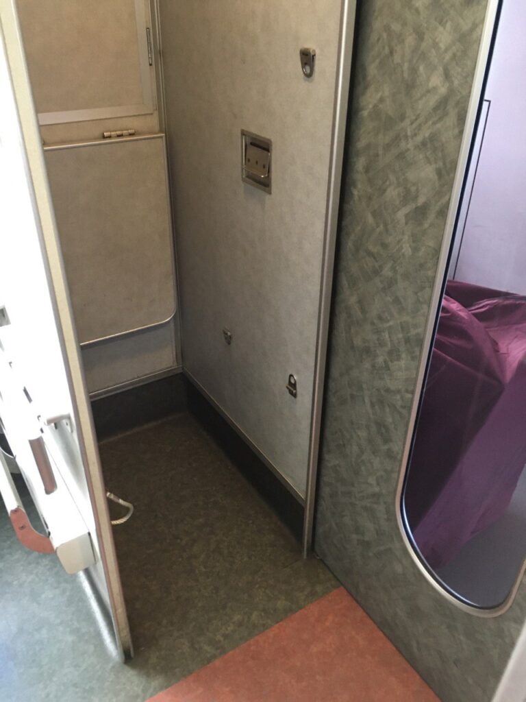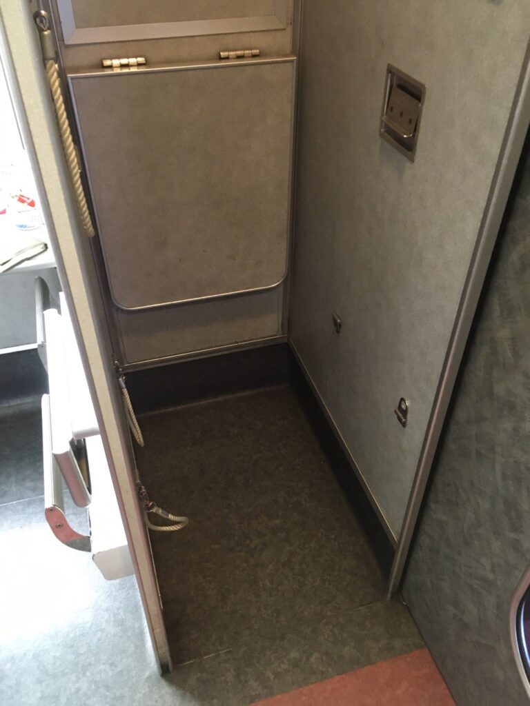 横型輪行では入らないし、縦型で置くにしてもハンドルロックをしてしまっていたので無理で、デッキに置くことになった。