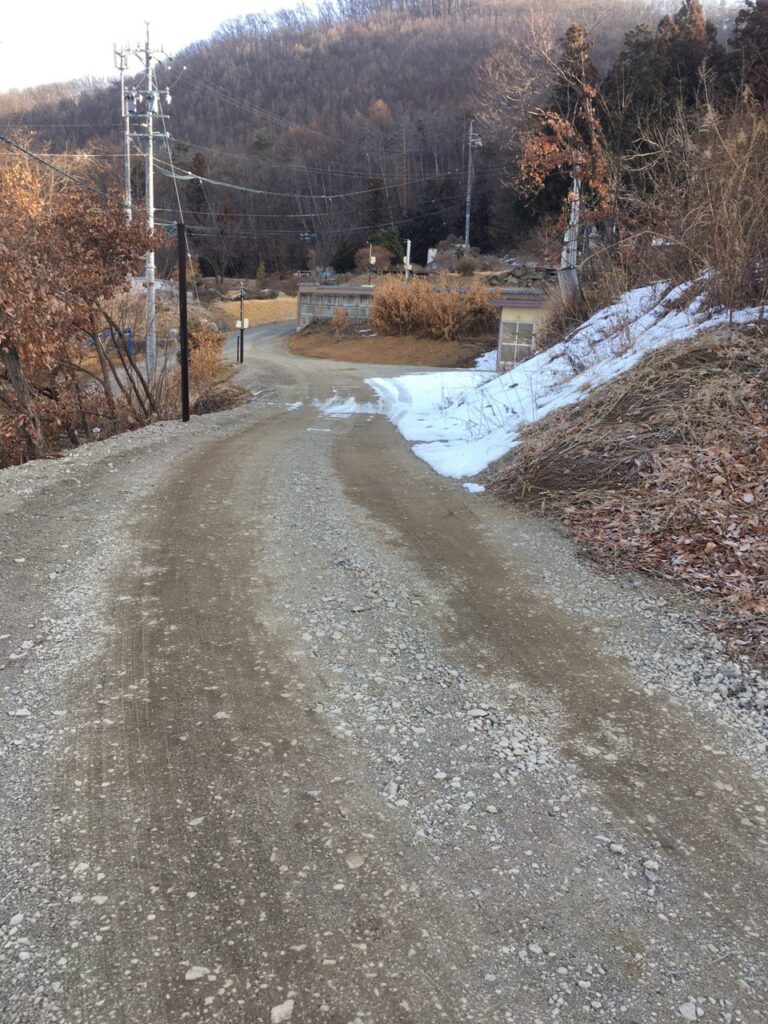 ここに来て薄暗い中にグラベル+突然雪出現ww 写真は翌朝のものだが、ここだけグラベルロードで来た甲斐があったw