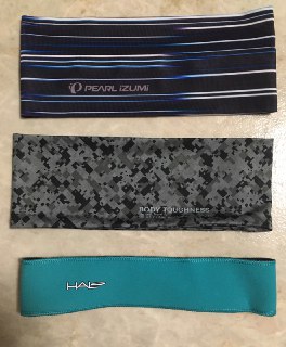 汗が目に入って痛い季節になってきました。屋外でなくて室内でローラー練習しているときでも、額から汗がボトボト落ちるのはうっとうしいもので、私はヘアバンド(ヘッドバンド)を使っています。サイクルキャップ派の人もいると思いますが、私の場合は眼鏡+カバーで、ヘルメットを着用すると帽子のつばも邪魔になるくらい、狭い額にあまりスペースの余裕がないのです(^-^;