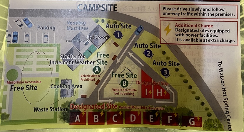 自転車でフリーサイトを利用する場合、A・Bとバイク可のサイトが利用できます。日本語で確認したい場合は公式ウェブサイトへ。