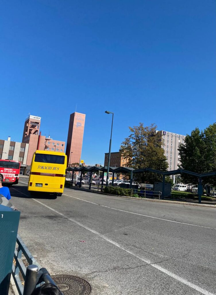自走なら廃駅の幸福駅・愛国駅に寄ってみるところですが、あっという間にJR帯広駅。この黄色いバスが、とかち帯広空港連絡バス(ウェブサイト)です。大人1000円、小人500円(6歳未満無料だが席が必要なら有料)でした。