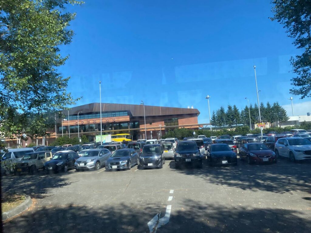 12:55にとかち帯広空港到着。荷物受け取りはスムーズ…というか、自転車が手渡しでなくターンテーブルで出てきました。JALですが、前年の旭川、伊丹は手渡しだったけどなー…。トイレに寄った後、バスを探すと出口の目の前にいました。出発直前でしたが係のおばさんが引き留めてくださって、乗ることができました。自転車2台は床の大型荷物室に入れてもらいました。予定より1本早い30分前のバスに乗れ、かなり時間に余裕ができました。
