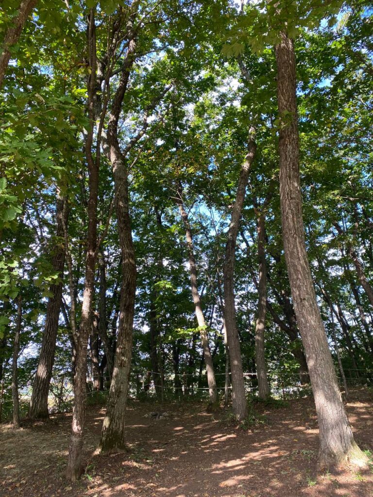 地面にはドングリがいっぱい。たまに頭の上にも落ちてきます(^-^; リスもよく見られるそうですが、子どもが騒がしいからどうかな? 地面は軟らかくてペグは打ちやすいですが、木から離れると石多めの所もありました。気温が快適だからか虫は多めで、テント設営中にめっちゃ蚊に刺されました。北海道の蚊はなぜかめちゃかゆい。