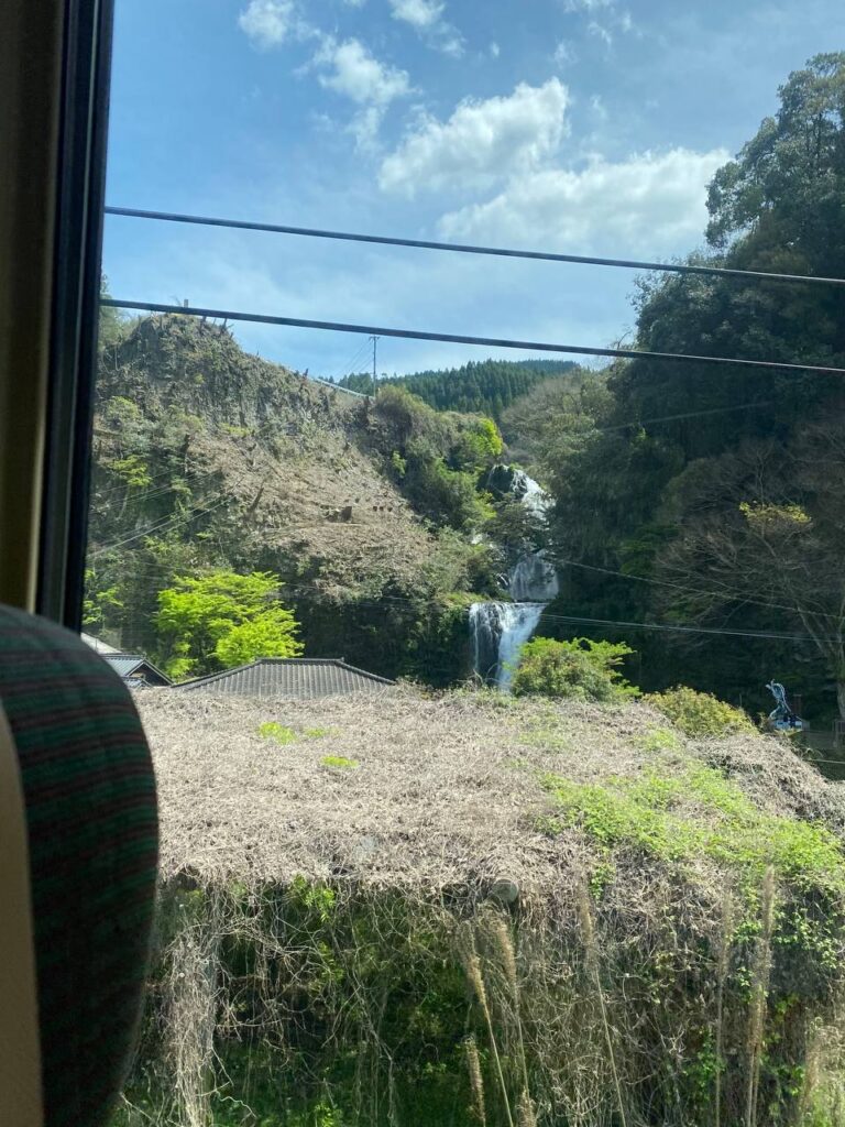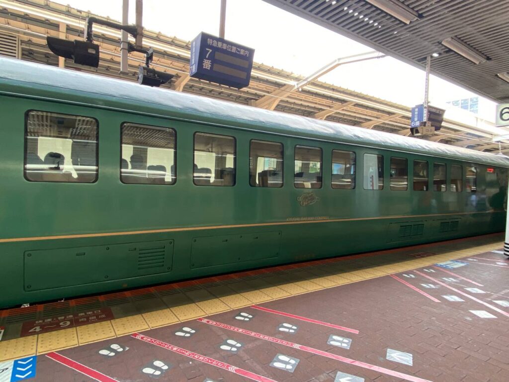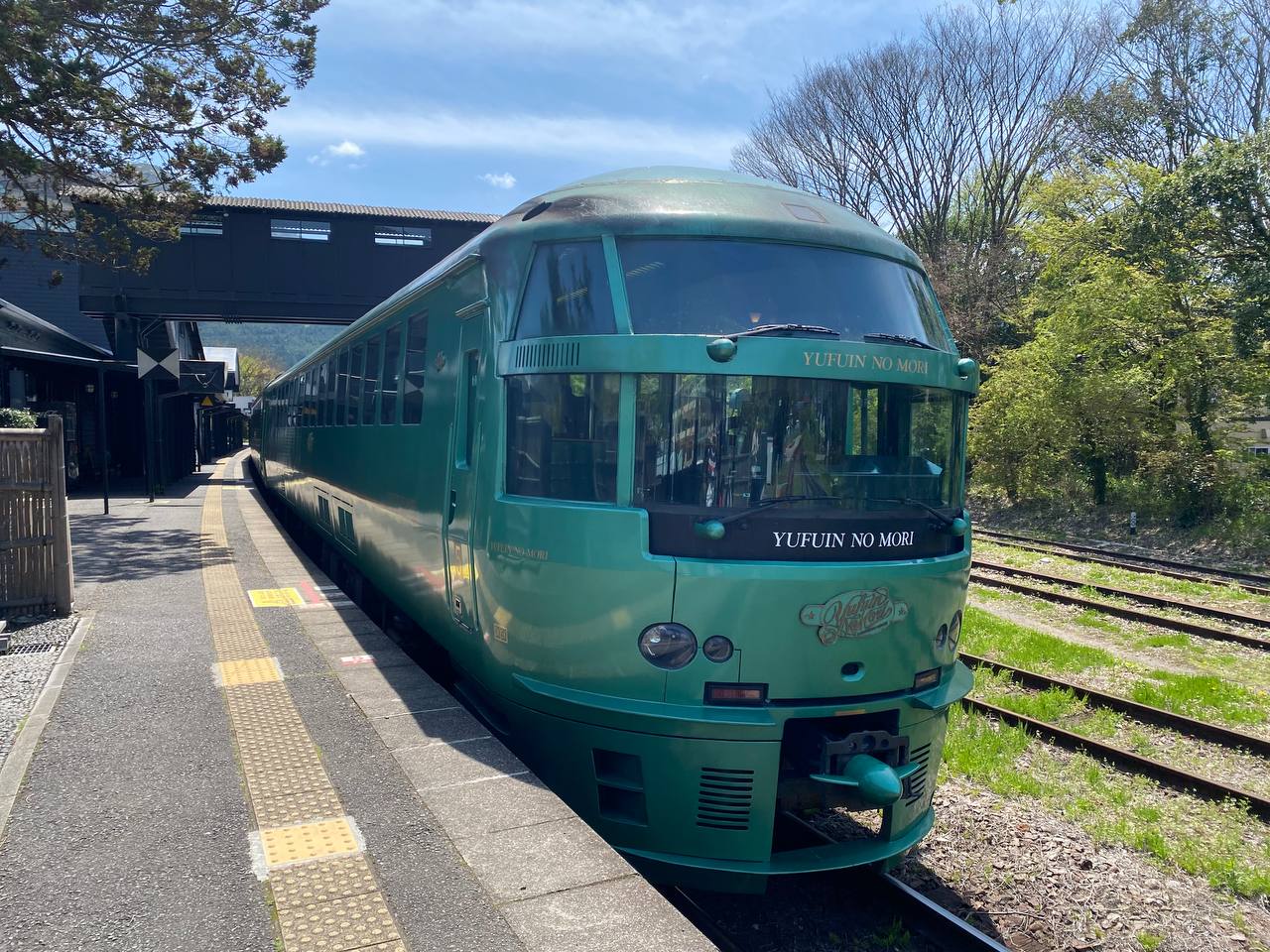 最終日のこの日は、由布院駅からゆふいんの森の乗って帰るだけです。緑矢印④で博多に出て、残りは新幹線で帰阪です。